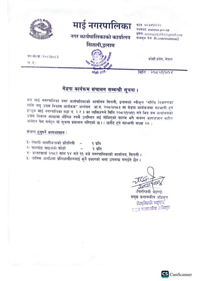 माई नगरपालिका शिक्षक छनौट कार्यविधि २०७४/०७५