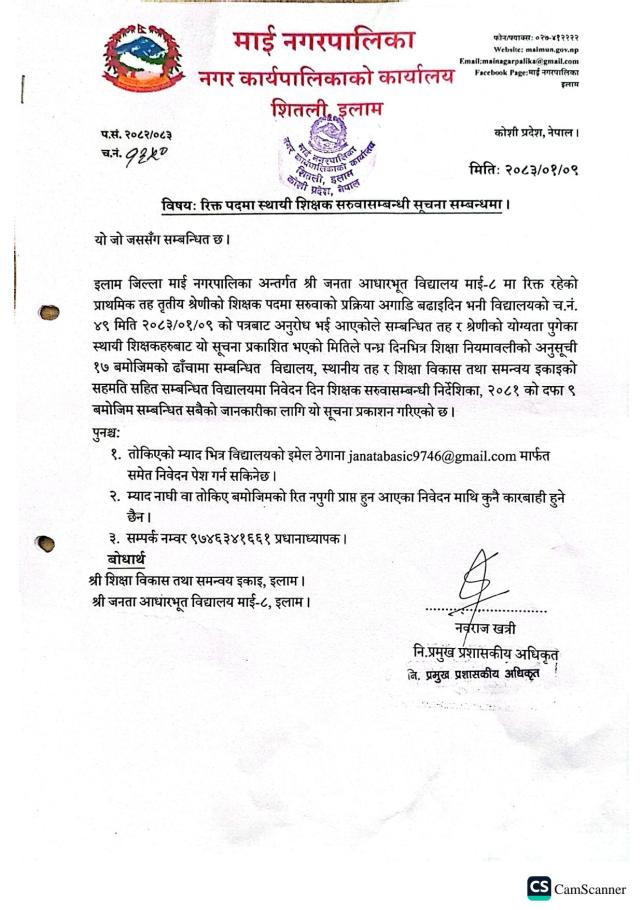 माई नगरपालिका शिक्षक छनौट कार्यविधि २०७४/०७५