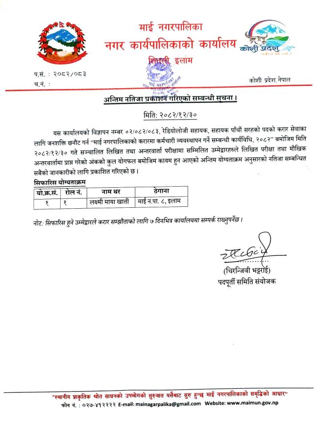 » रेडियोलोजी सहायक पदको अन्तिम नतिजा प्रकाशन गरिएको सम्बन्धी सूचना ।