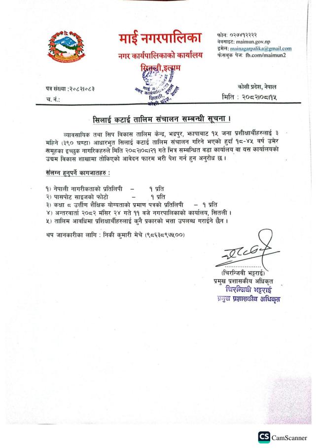 » सिलाई कटाई तालिम संचालन सम्बन्धी सूचना ।