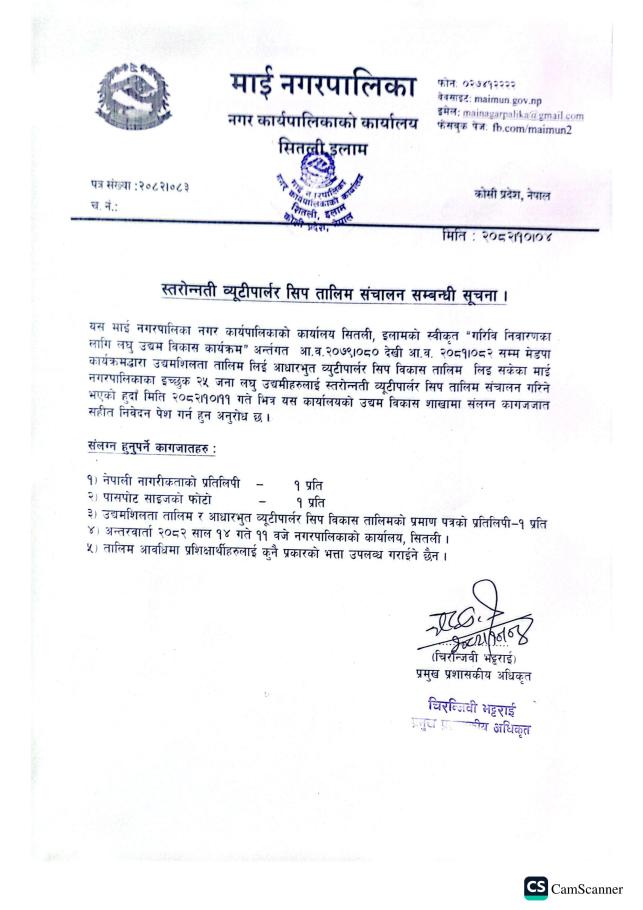 » स्तरोन्नती ब्यूटी पार्लर सीप तालिम संचालन सम्बन्धी सूचना ।