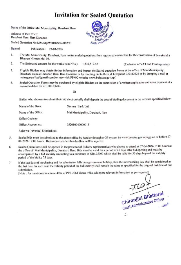 सार्वजनिक खरिद/बोलपत्र सूचना