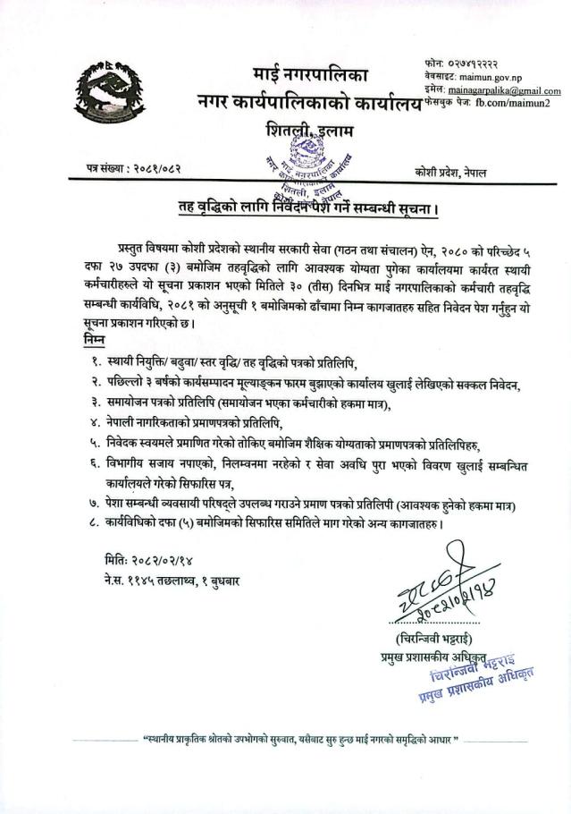तहवृद्धिको लागि निवेदन पेश गर्ने सम्बन्धी सूचना ।