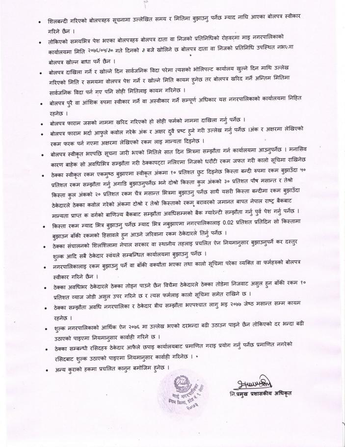 ठेक्का सम्झौता अन्त्य किन नगर्ने सम्बन्धी सूचना ।
