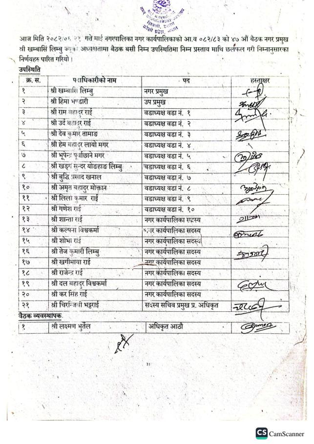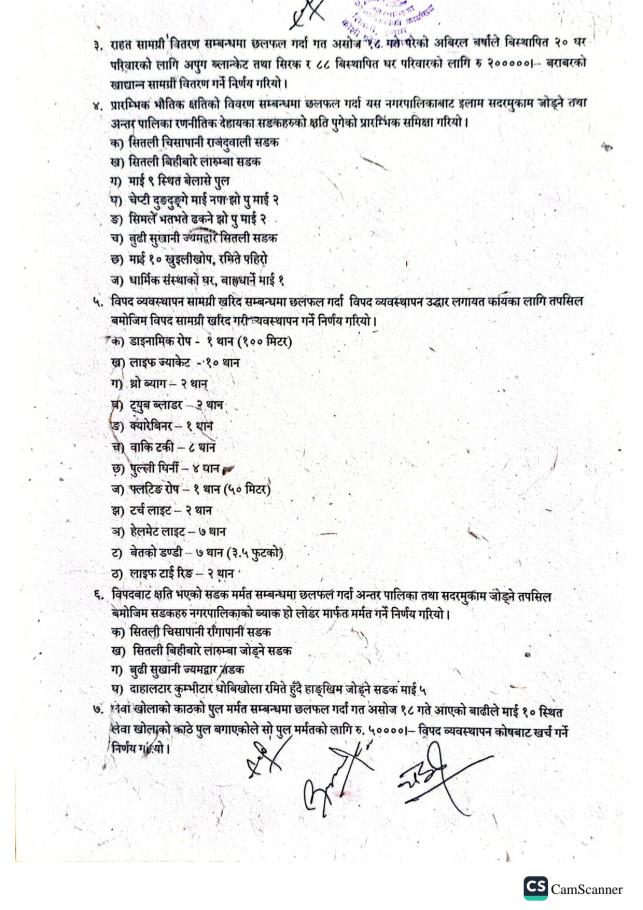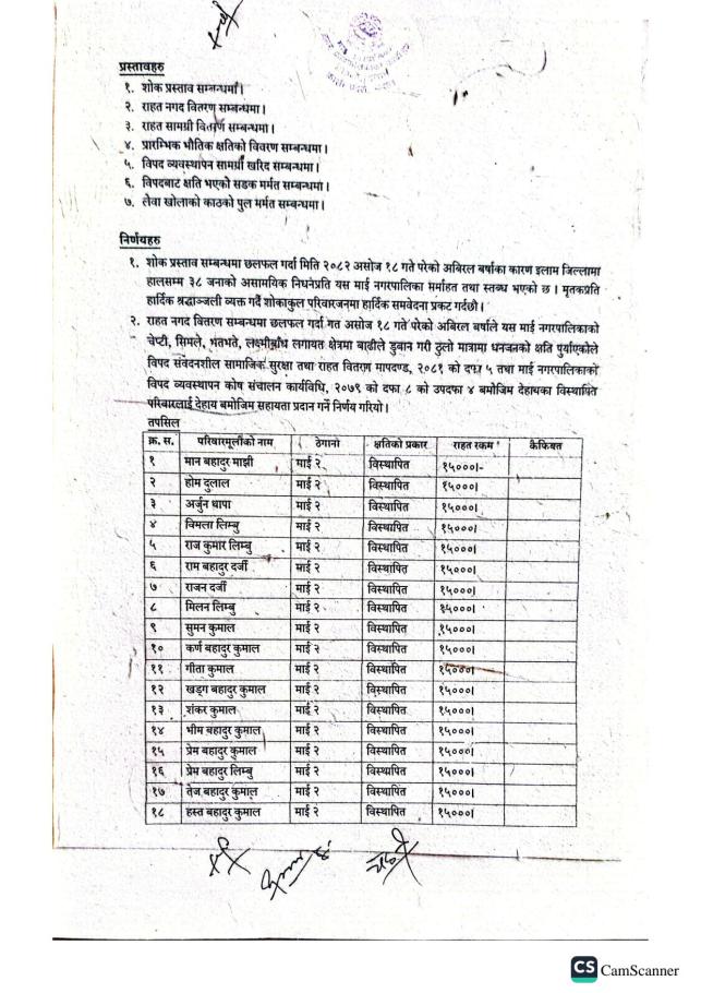 मिति २०८२ साल असोज २१ गते बसेको माई नगर कार्यपालिकाको बैठकका निर्णयहरु ।