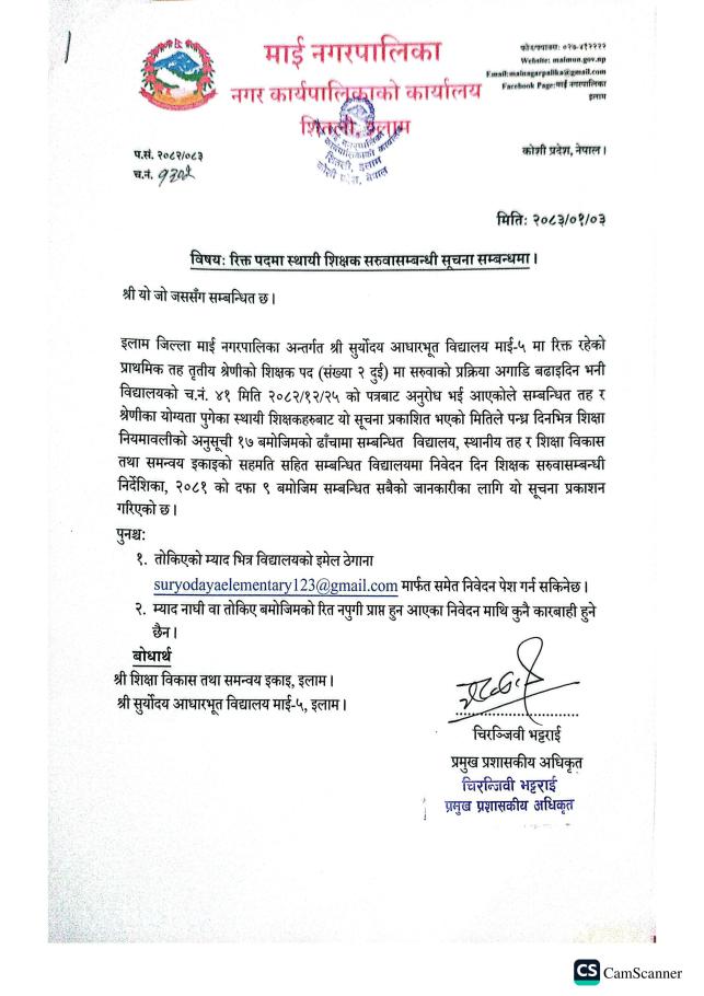 माई नगरपालिका शिक्षक छनौट कार्यविधि २०७४/०७५