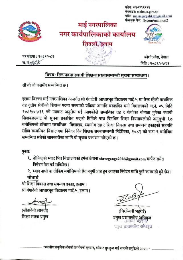 माई नगरपालिका शिक्षक छनौट कार्यविधि २०७४/०७५