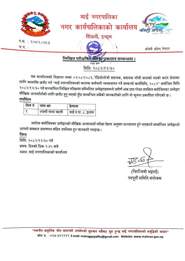 » लिखित परीक्षाको नतिजा प्रकाशन गरिएको सम्बन्धी सूचना ।