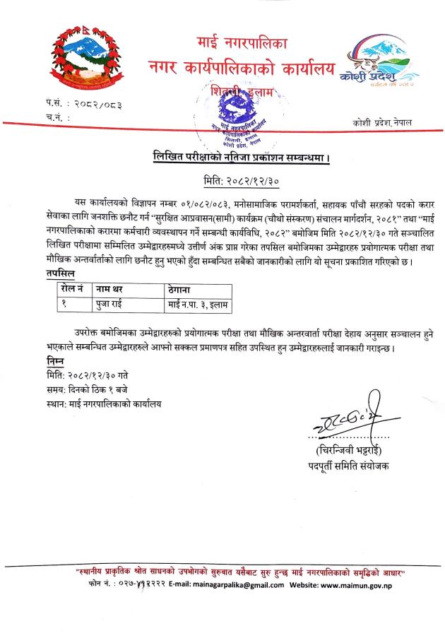 माई नगरपालिका शिक्षक छनौट कार्यविधि २०७४/०७५