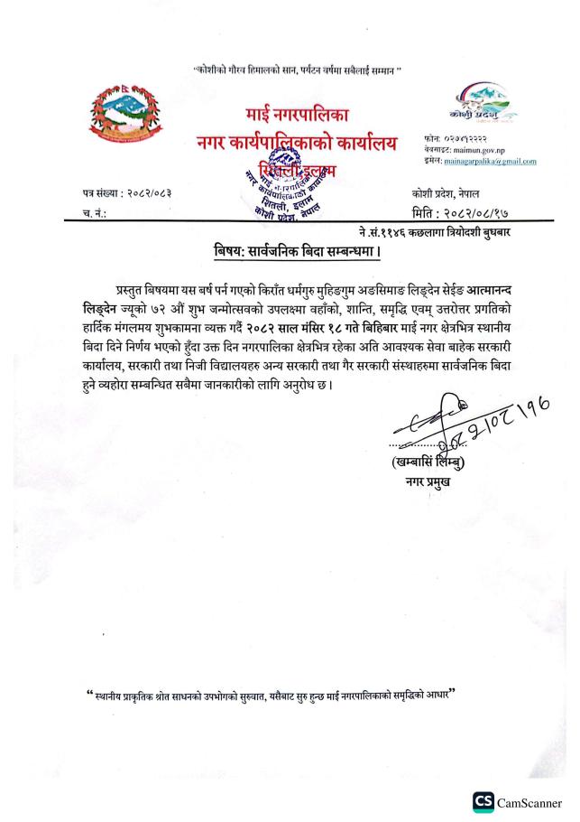 माई नगरपालिकाको आ.ब. २०८२/८३ को बजेट तथा कार्यक्रम