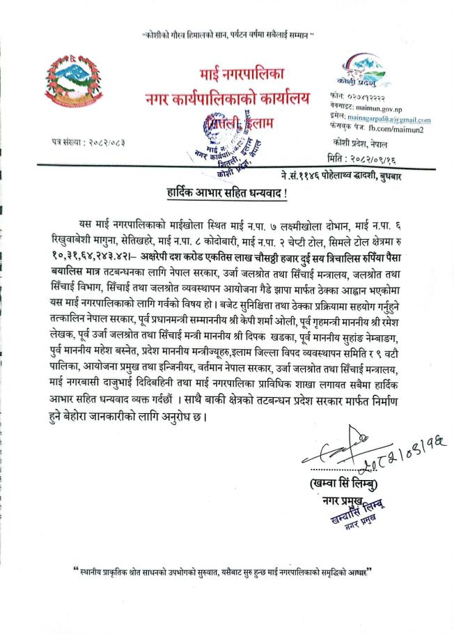 माई नगरपालिकाको आ.ब. २०८२/८३ को बजेट तथा कार्यक्रम